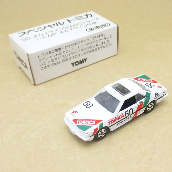 トミーが当時スポンサーをしていた「トミカP’スカイライン」をモチーフにした限定モデルです。6代目スカイライン(R30型)をカラーリングだけでレースカーに見せています。